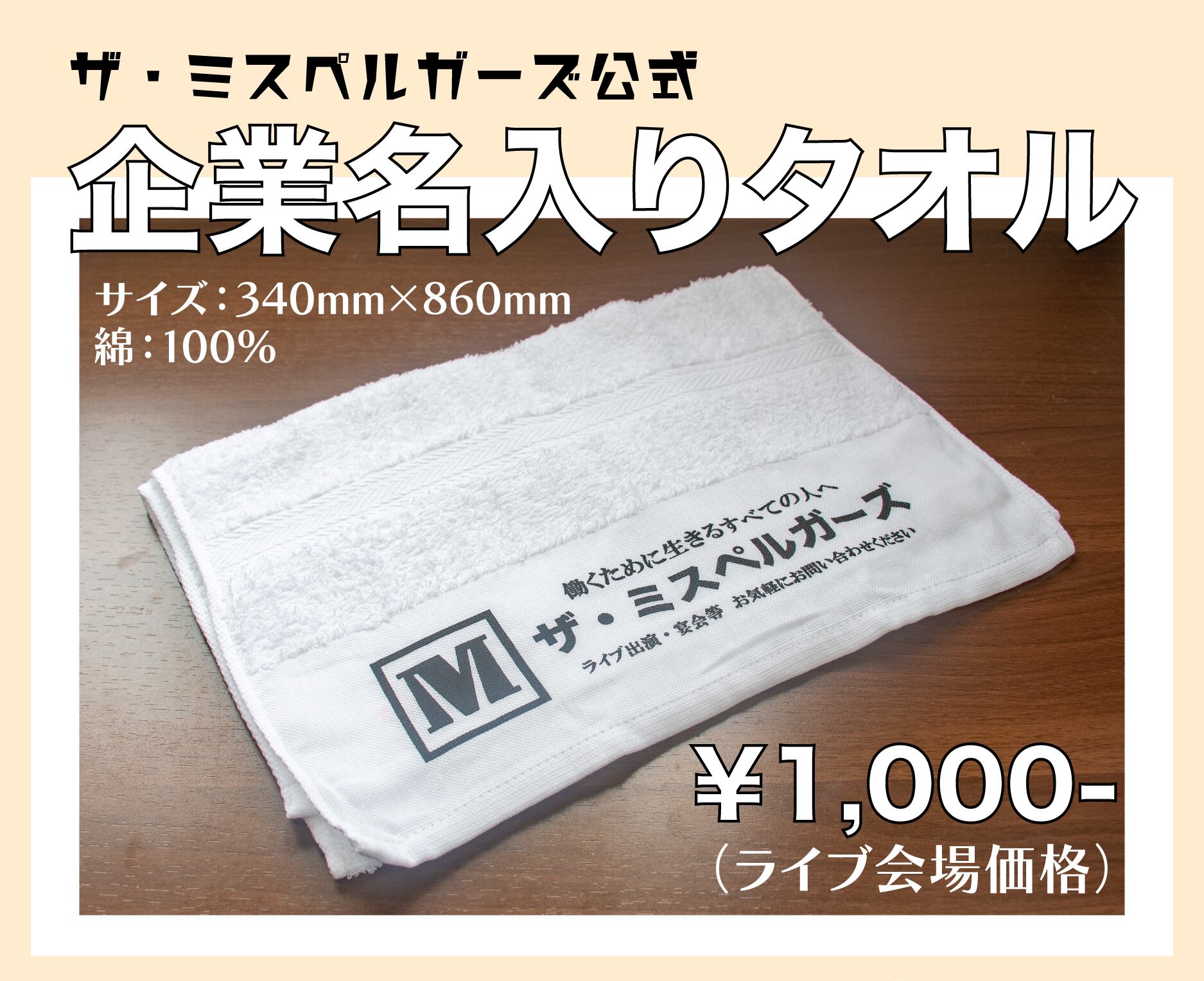 ザ・ミスペルガーズの企業ノベルティ風タオル。